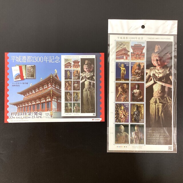 平城遷都1300年記念 「平城宮跡大極殿と奈良の文化財」 80円切手 1シート リーフレット付き