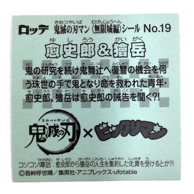 【商品名】鬼滅の刃マンチョコ 無限城編 NO.19 愈史郎&獪岳