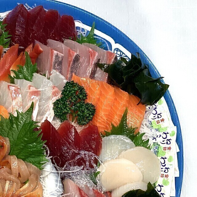 ​◉​規 格:ほたて貝柱、水ダコ、ツブ貝(解凍)、ホッキ貝(解凍)、まぐろたたき、真鯛(養殖)、南まぐろ(解凍)、サーモン(養殖)、炙り真鯛(養殖)、カンパチ(養殖)、甘えび(解凍)