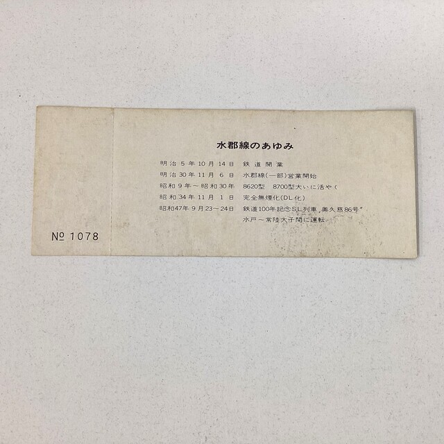 ・1972年(昭和47年)9月23日〜9月24日。発行された「鉄道100年」を記念したSL運転記念乗車券