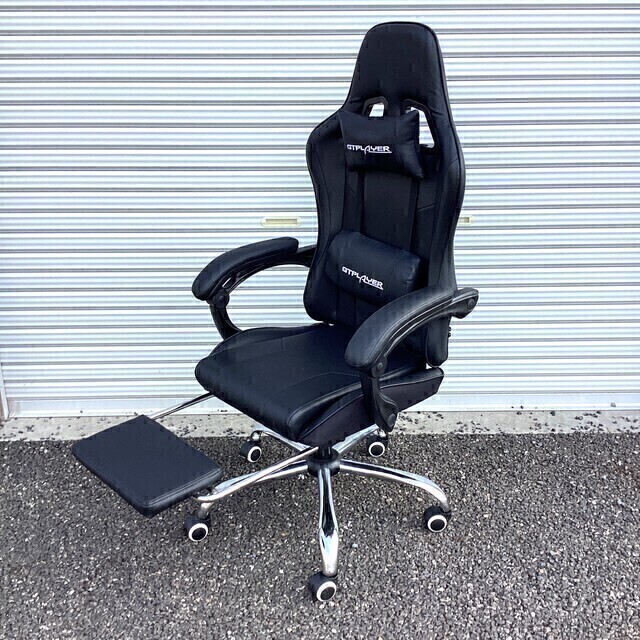 GTPLAYER ゲーミングチェア ブラック 収納式オットマン付き デスクチェア 椅子