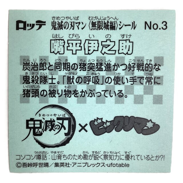 【商品名】鬼滅の刃マンチョコ 無限城編 NO.3 嘴平伊之助