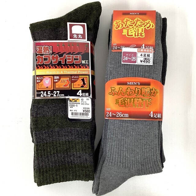 温熱 カプサイシン加工 靴下 4足組 24.5~27㎝