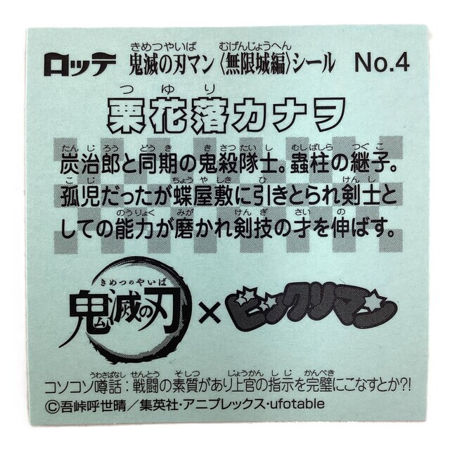 【商品名】鬼滅の刃マンチョコ 無限城編 NO.4 栗花落カナヲ