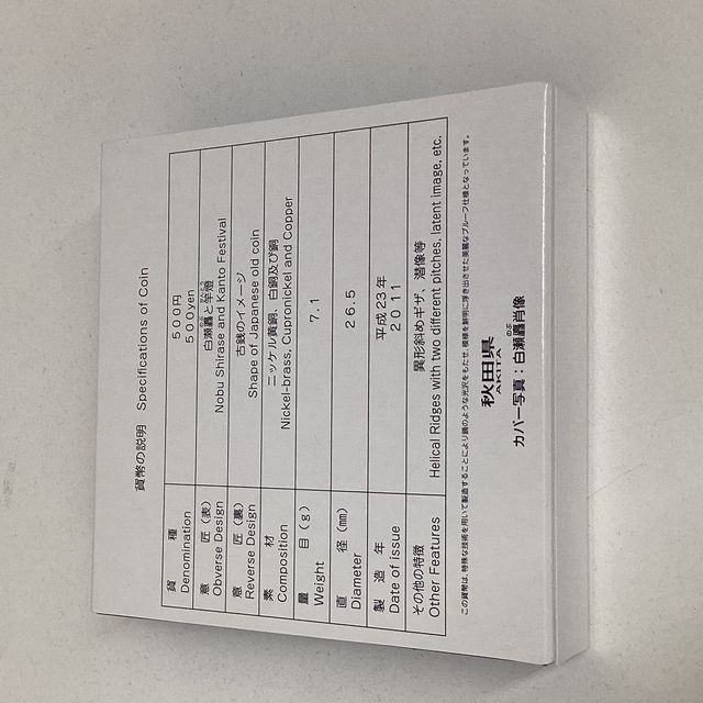【商品名】地方自治法施行60周年記念 5百円バイカラー・クラッドプルーフ貨幣セット 平成23年 秋田県