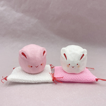 豆干支 卯(ウサギ) 座布団付き サイズ(5.5㎝角程度)